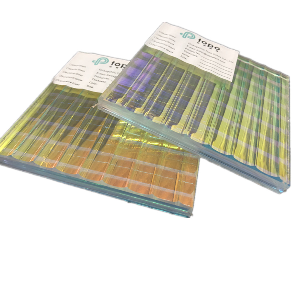 زجاج فني مصفح بنمط متدرج بزوايا مختلفة يُظهر ألوانًا مختلفة